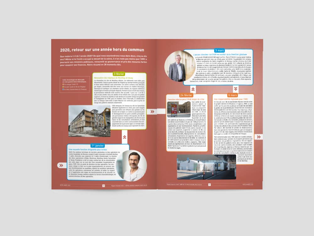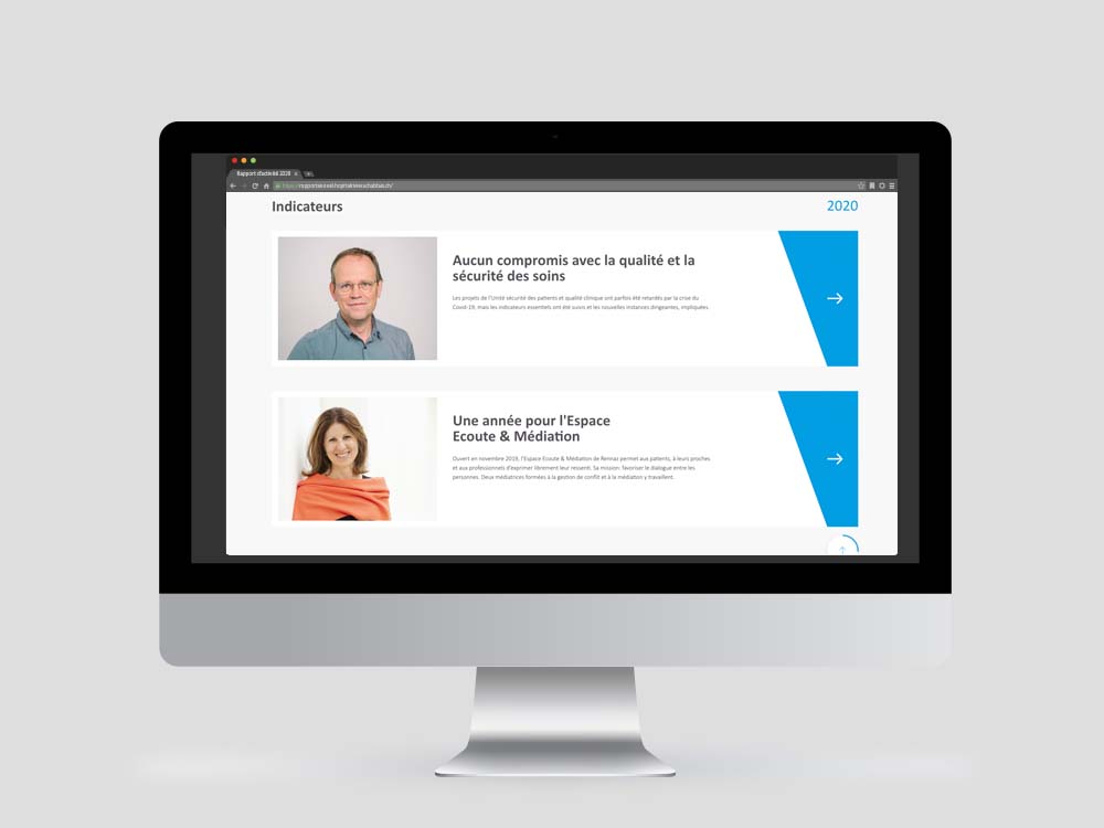 En complément de la version papier, rédaction du contenu et réalisation du rapport digital de l’Hôpital Riviera-Chablais, en collaboration avec bebold.
